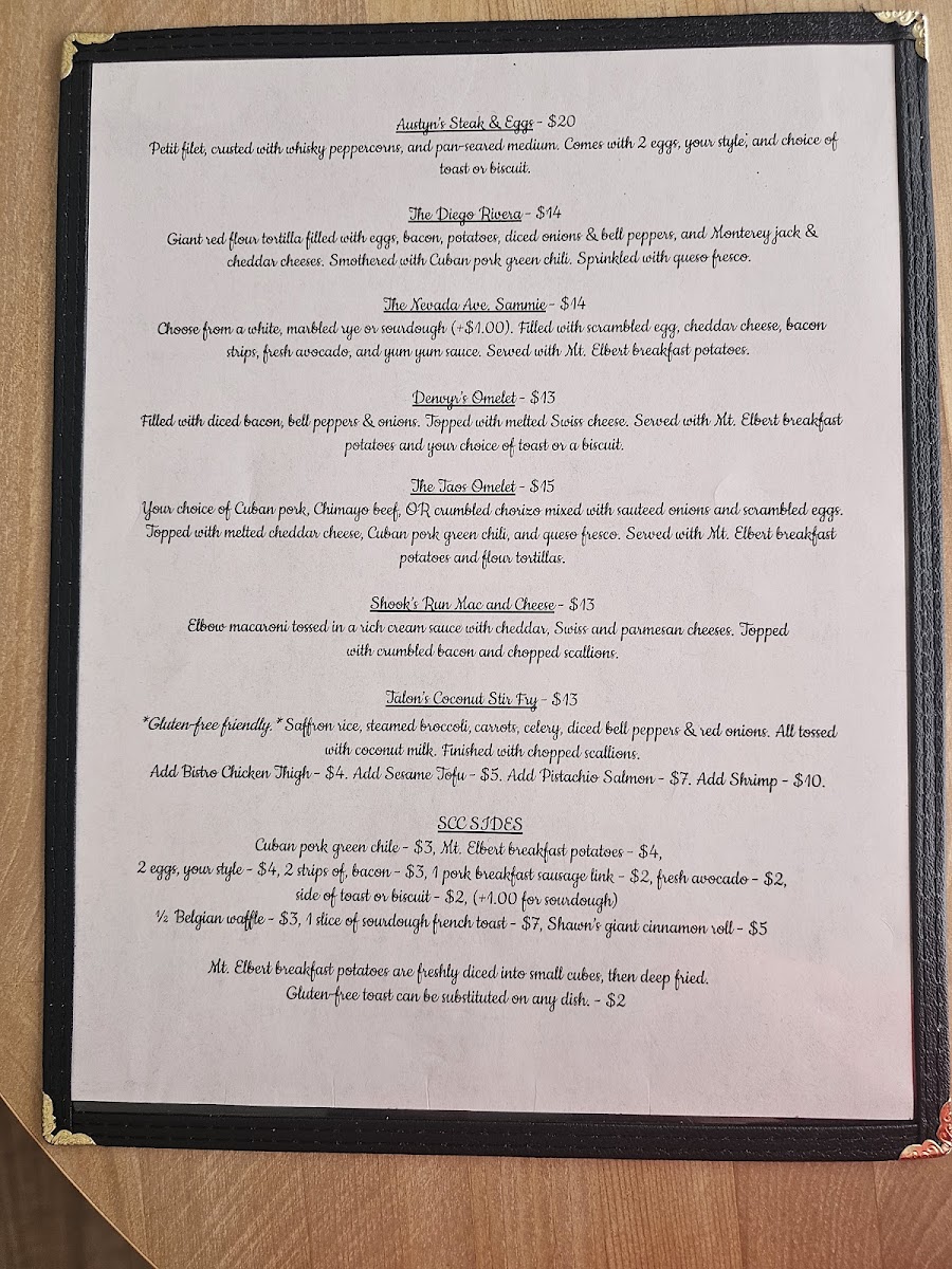 Callicrate beef, cheddar & Swiss, bacon, ketchup, mustard, pickle slices, and a roasted Pueblo chile. All on a toasted brioche bun • Bestie Style: Fresh avocado and over-medium egg +$3.00 | Gordo Style: Extra beef patty +$4.00